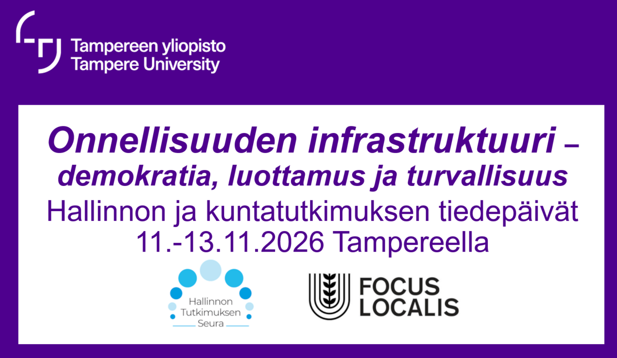 Hallinnon Tutkimuksen Seura ja Focus Localis ry järjestävät tiedepäivät Tampereella 11.-13.11.2026.